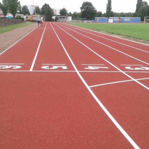 Neubau einer Leichtathletikanlage mit 4 Rundlaufbahnen, einschließlich Weitsprung- und Kugelstoßanlage.